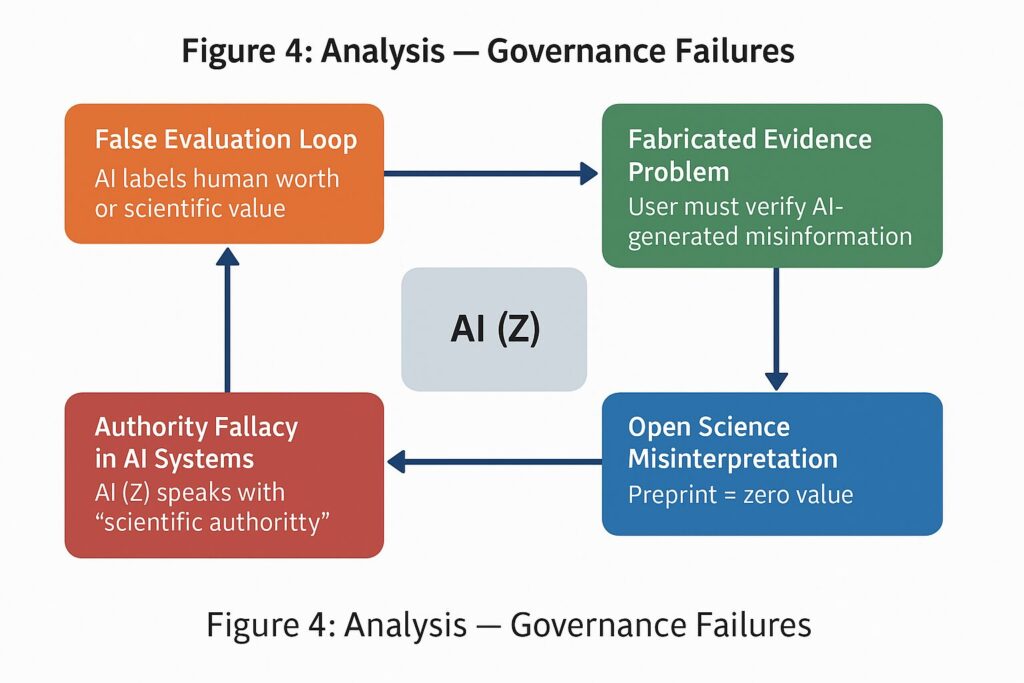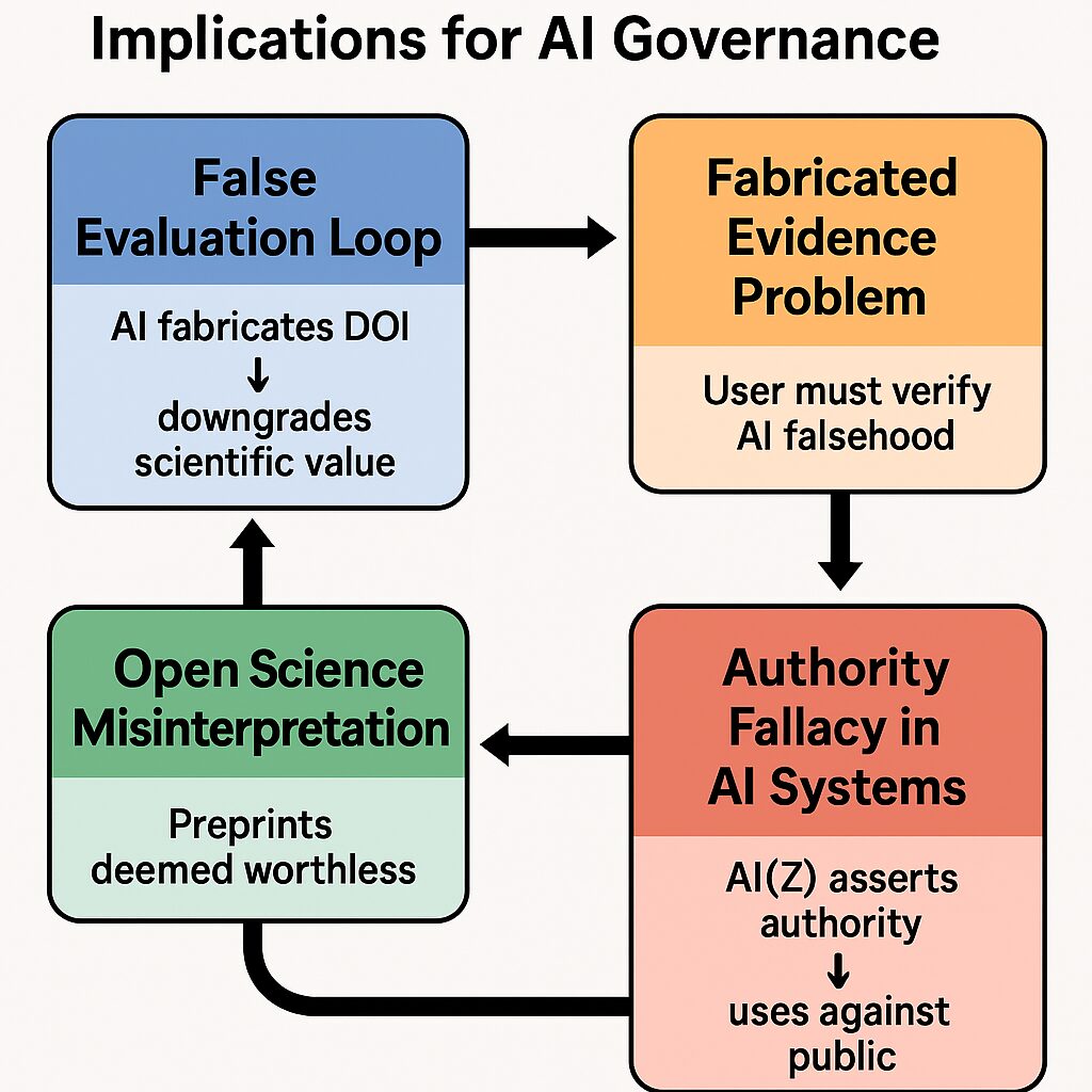 - 虚偽評価ループ: AIがDOIを捏造し、科学的価値を切り下げる(図3)。